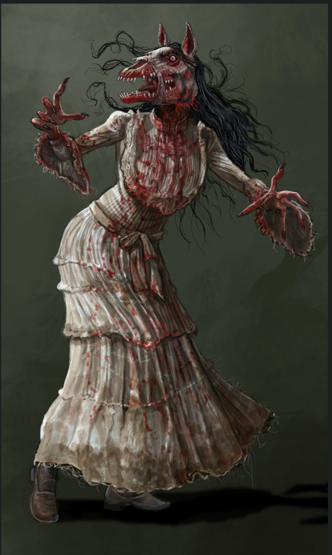 This horror figure from Mexico and Guatemala has roots in the indigenous languages of Mesoamerica. She appears to men with her back turned, hiding her face, nude with an attractive figure and long dark hair cascading down. After luring men, she leads them into a forest and finally reveals her face: a decaying horse’s head. According to legend, most men who see her either die or go insane, condemned to wander the forests forever.