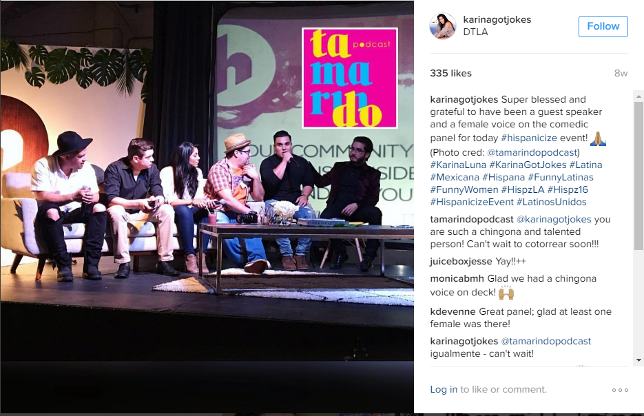 Image Credit: Instagram – Karina Got Jokes – Karina sharing her thoughts on being a Latina comedian – ‘Comedy Creators’ panel – Hispanicize LA