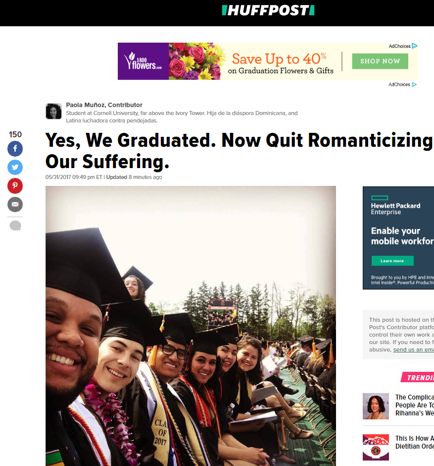 To me, like many first generation low-income people of color, attaining a Bachelor’s degree represents much more than the closure of a chapter. It is a way to honor the sacrifices of our parents who crossed deserts and defied borders for better opportunities. Those parents who did not have the opportunity to get an education yet when raising their children instilled education as one of the highest values. It is overcoming the obstacles of a failed public education system, a society that criminalizes melanin-blessed skin, and a poverty that tries to crush our dreams. Graduating from college is a reminder that I am a smart, rebellious, brown, womxn thriving in a capitalist-white-supremacist-hetero-patriarchal society that is trying to crush me. The fact that I have come this far is, no doubt, a miracle. I’ve expanded into places that my ancestors couldn’t. I did not have the privilege of a selfish education and came with an understanding that this education was not just for me. My education is an act of resistance and this degree a tool to uplift my community. However, the most valuable and transformational education I have ever received has been the one of my middle school educated mother who taught me that selfless love and persistence can move mountains.