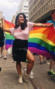 When I was twelve years old, I would always see the parade while being in the car. I would always want to go outside and participate. My mother would say, “con esa gente no, Amy”, and I would respond, “do not say that about them, you do not know them” but that is also because I was already learning to identify with bisexuality in middle school. I knew that at the time, I would not be safe to come out, yet I knew I would eventually one day. I remember hanging out with my girlfriend after school, hold her hand in front of her parents, but then pretended to date boys for my parent’s pleasure. I remember my girlfriend at the time being called a “dyke” for dressing more masculine than feminine. I remember kids would make fun of me for going out with her and say, “didn’t think that was your type.” I remember my other partner being called “too feminine” to be into girls and did not take her sexuality seriously. “Too”, “too”, “too” much “too” little of everything, they wanted us to stop existing, to make us believe we never existed in the first place.