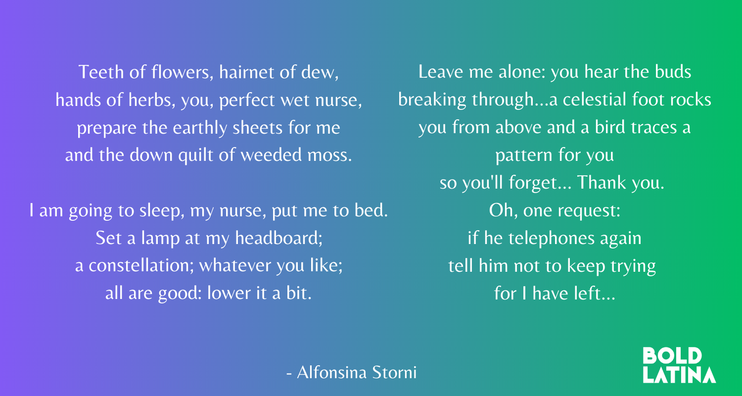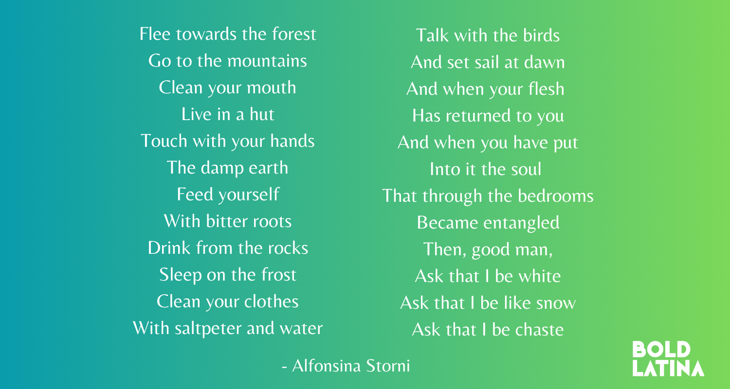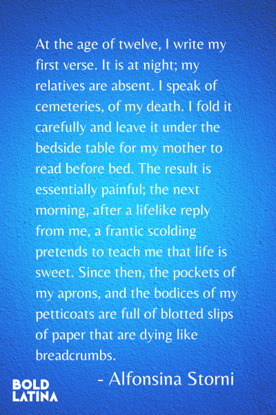 The previous quote was written in 1919, no less. Its fearless author, who wielded her pen in one of the most distant countries in South America, is Alfonsina Storni one of the most influential Latin American literary figures of the 20th century. In this article, we’ll celebrate this Latina poet and journalist by learning how her writing challenged traditional expectations of femininity and advocated for women’s rights in a world ruled by men.